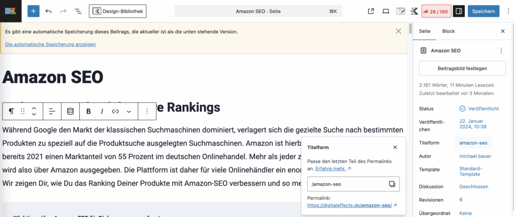 - Onpage-Workflows (Fokus-Keyword je Seite, Checks der Lesbarkeit)